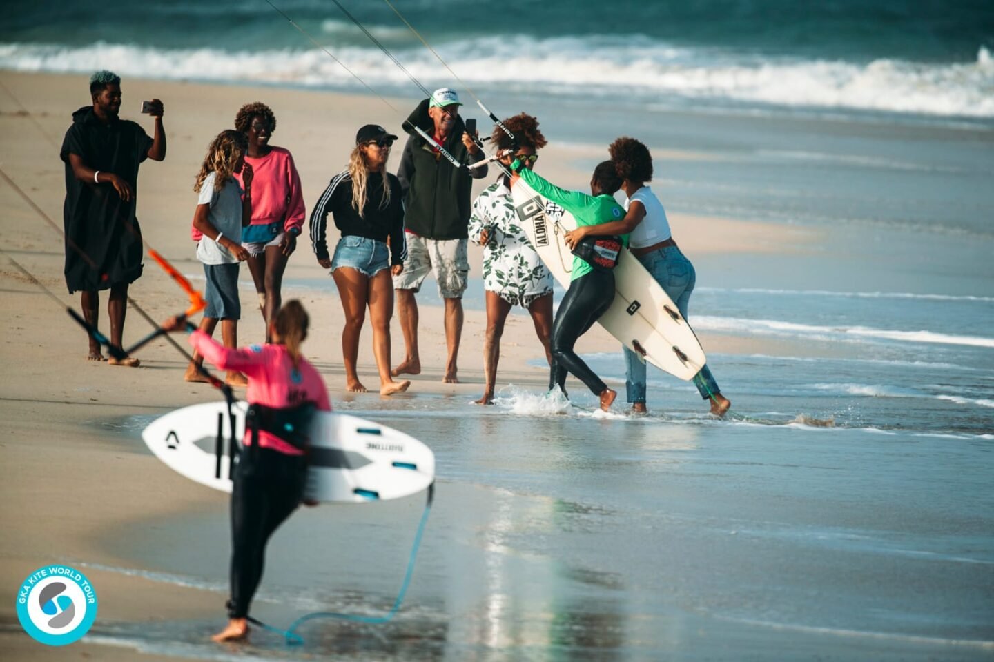 Local rider Irati Fonseca CV came through her heat (much to the delight of the home crowd) with a complete score of 6.97. The Cape Verdean will now face the current female world champion Carla Herrera SP in the quarter finals. Carla rode her heat well, with an impressive 6.00 wave, and a complete score of 11.07.