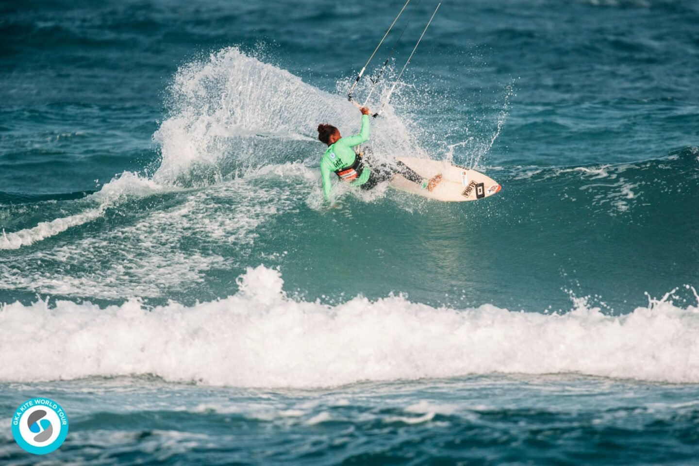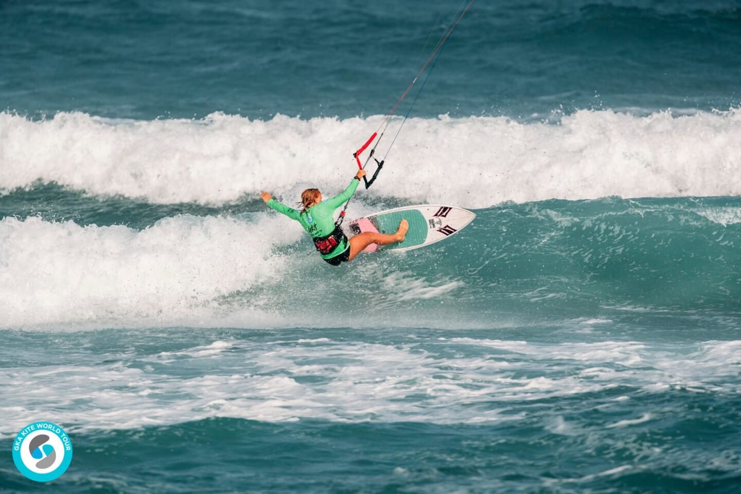 Our women’s Freestyle world champion Mikaili Sol BR proved today that she is an all-round waterwoman, by advancing into the quarter finals at her first ever Kite-Surf event. The 15 year old moved through with a complete score of 8.84. She now faces GKA Kite-Surf World Tour verteran Charlotte Carpentier FR who advanced with a complete score of 9.54.