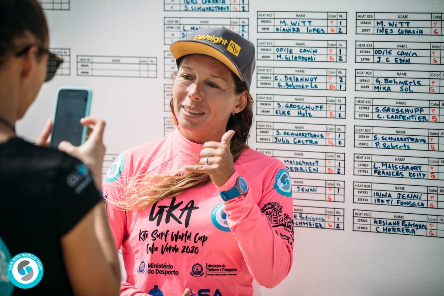 One rider that didn’t seem to notice the lack of swell was Ines Correia PT. The Portugese woman spends part of the year in Cape Verde, and local knowledge shone through. Ines took both the highest scoring wave of the day 6.93, and the highest complete score 13.70 in the women’s division in the first heat. She goes through to face JC Edin SE in the quarter finals. Johanna-Catharina goes through with a complete score of 8.54.