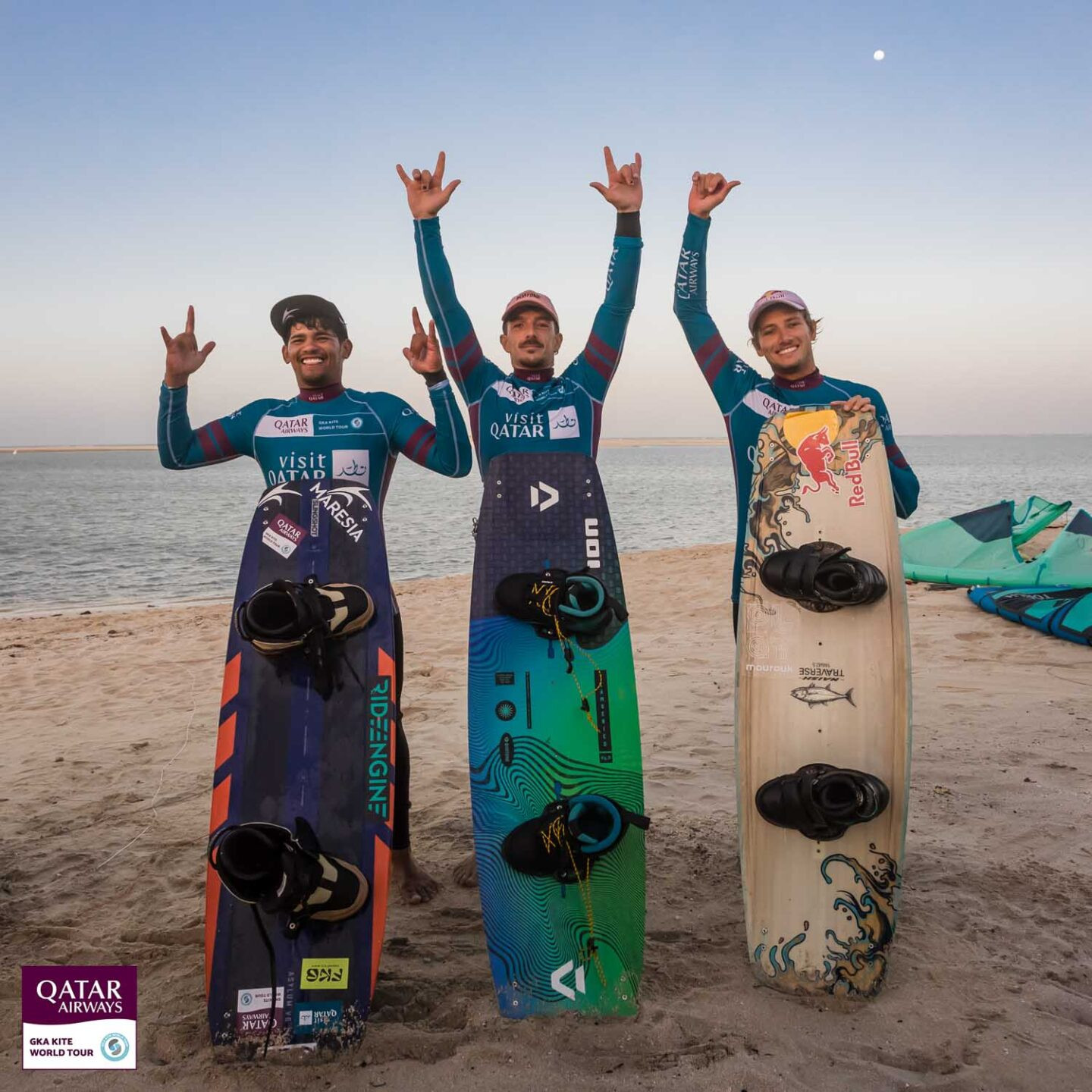 That wraps up the official competition here at the Visit Qatar Freestyle-Kite World Cup. Saturday is the last day of the event window and there will be show performances on the water as well as the closing ceremony here at the Fuwairit Kite Beach resort, where the winners will officially be crowned.