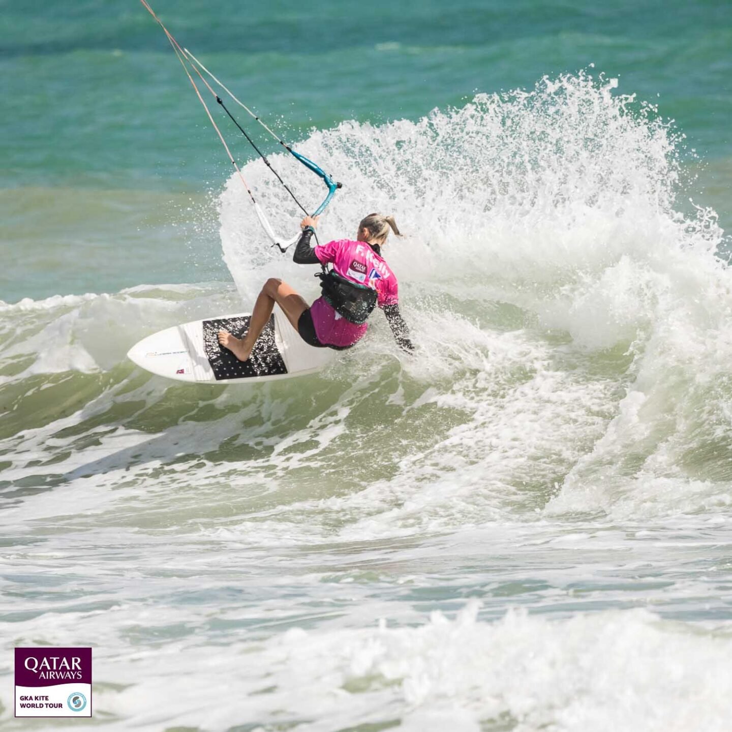 Compact in the legs, centred over the board and at one with the kite, she repeatedly repositioned it in the sky to stay in close connection with the wave.