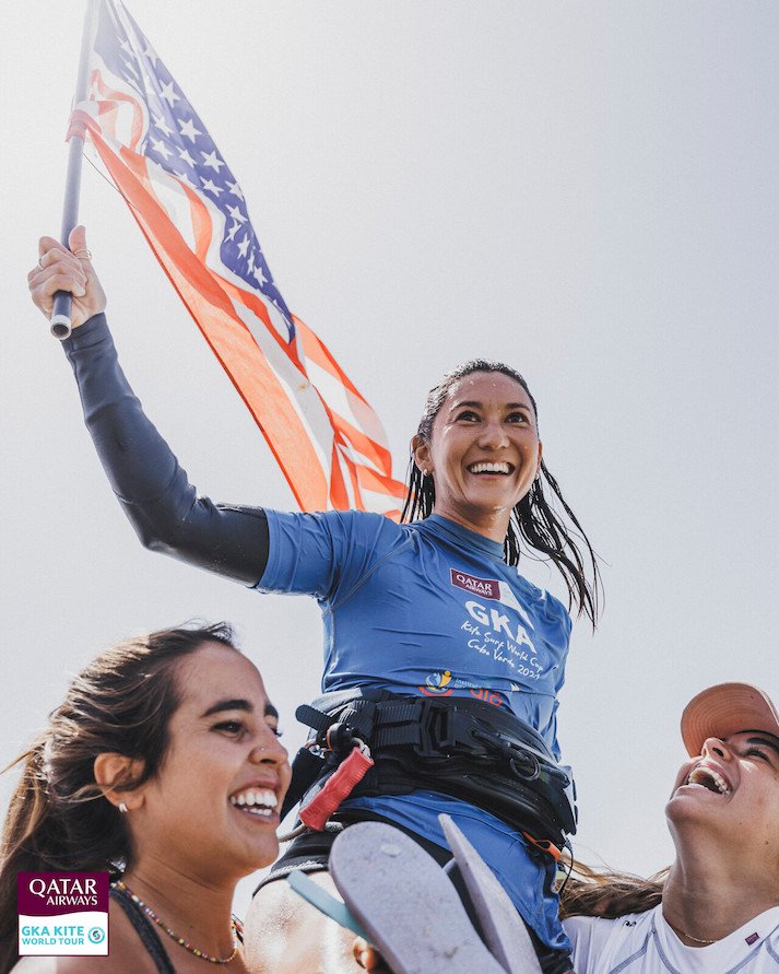 Current world champion, the US’s Moona Whyte, dominated the final of the GKA Kite-Surf World Cup Cape Verde to take a convincing win at the first stop of the season in perfect conditions.