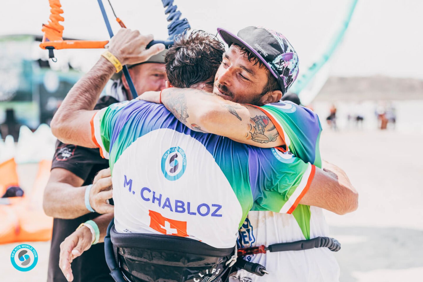 We started the day with the Men’s Semi-Final Rounds. The music was pumping and the competition area stacked with the world’s best freestyle kiteboarders. In Heat One, Gianmaria Coccoluto (ITA) competed against Manoel Soares (BRA), Maxime Chabloz (CHE) and Posito Martinez (DOM)–a mega-talented heat to say the least!
