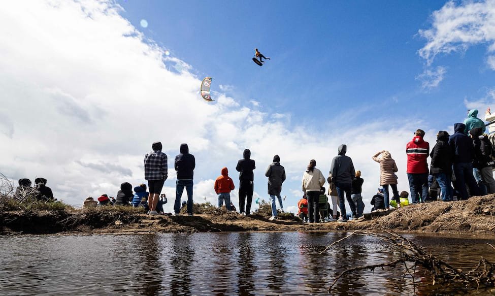 Specifics of the spot: The wind funnels in the corner of the jump zone, with result that riders can often jump three metres to five metres higher than usual.